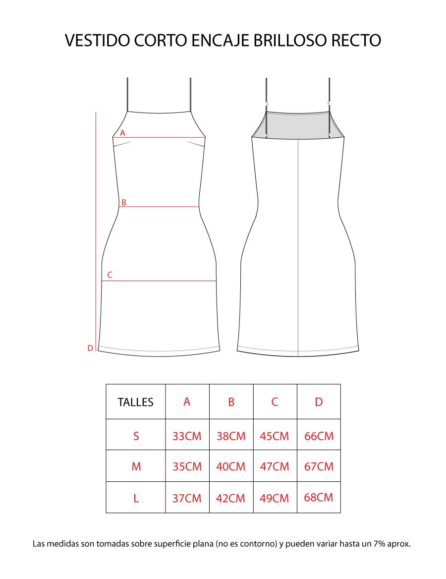 Vestido corto confeccionado en encaje con brillos, con forrería interna que aporta comodidad y mejor terminación. Presenta breteles regulables y espalda con elástico para un calce más seguro y adaptable.