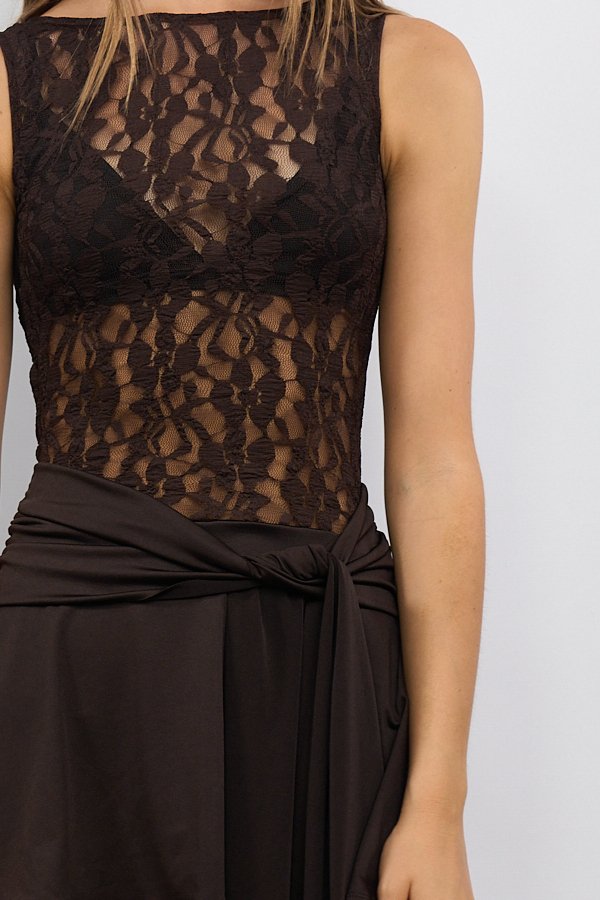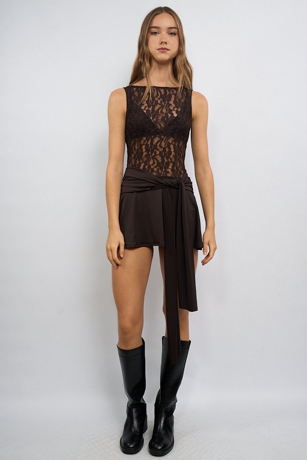 / VESTIDO CORTO ENCAJE FALDA LAZO