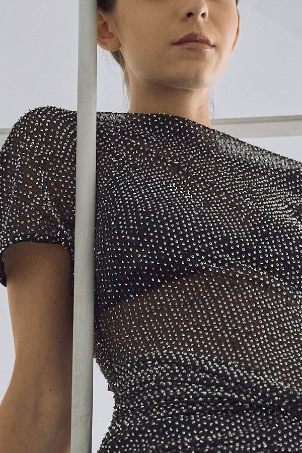 VESTIDO CORTO TUL PIEDRAS PARA ATAR