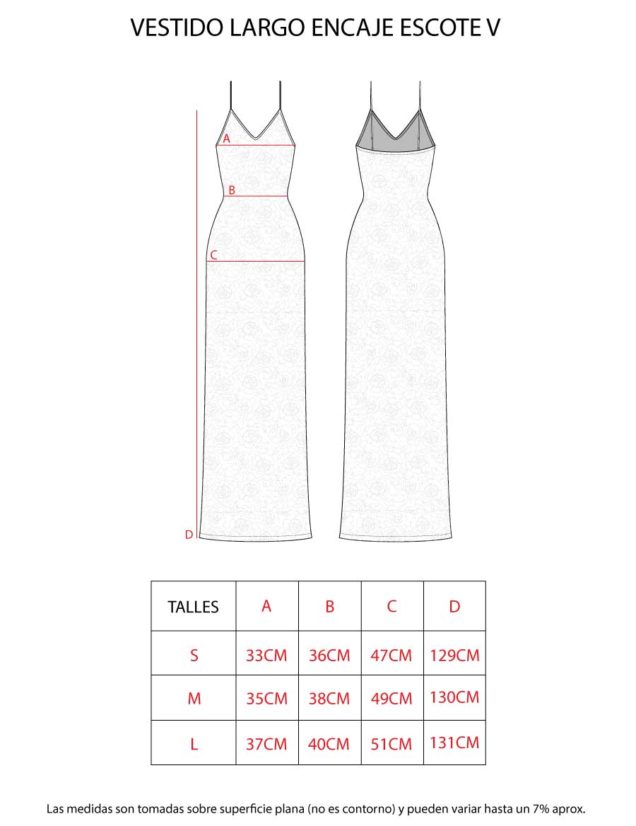 Vestido confeccionado en encaje con escote en V, totalmente transparente. Perfecto para usar con bralette y culotte, permitiendo crear un conjunto llamativo y adaptable a distintas ocasiones.