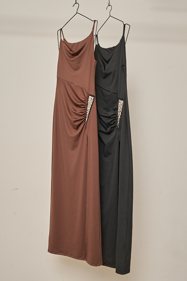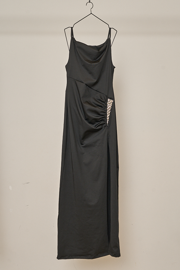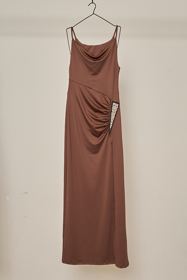 VESTIDO LARGO SASTRERO DOBLE ESCOTE SATEN