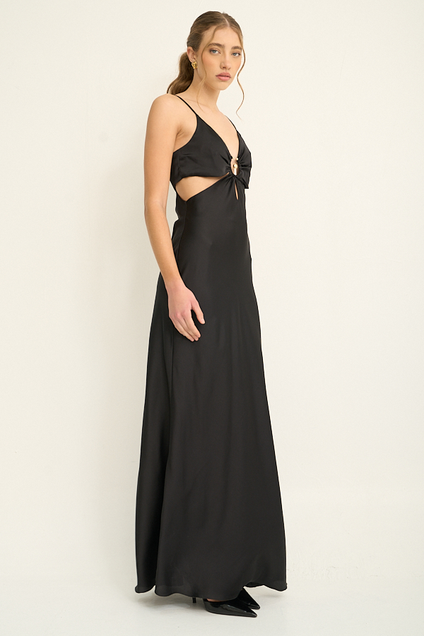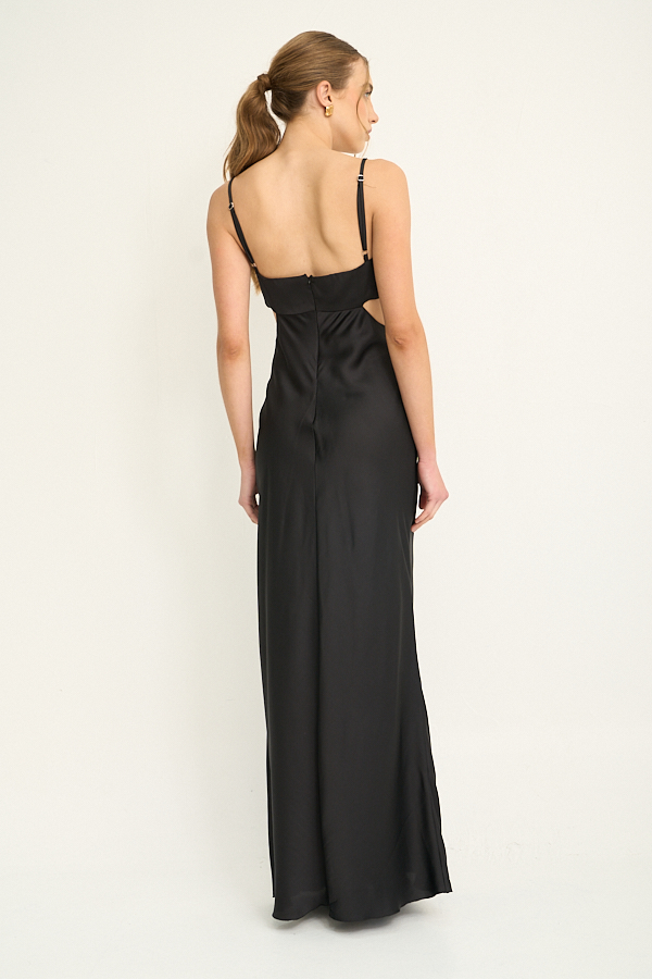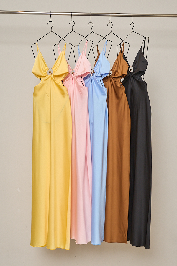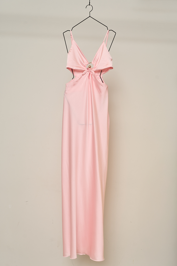 VESTIDO LARGO SATEN ACCESORIO BUSTO