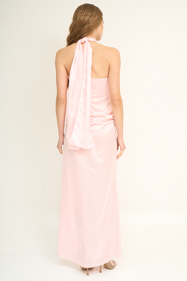 VESTIDO LARGO SATEN ACCESORIO TIRA X