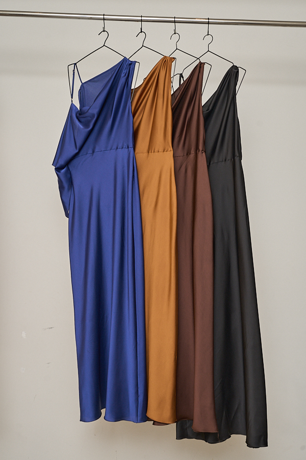 VESTIDO LARGO SATEN DOBLE VOLADO