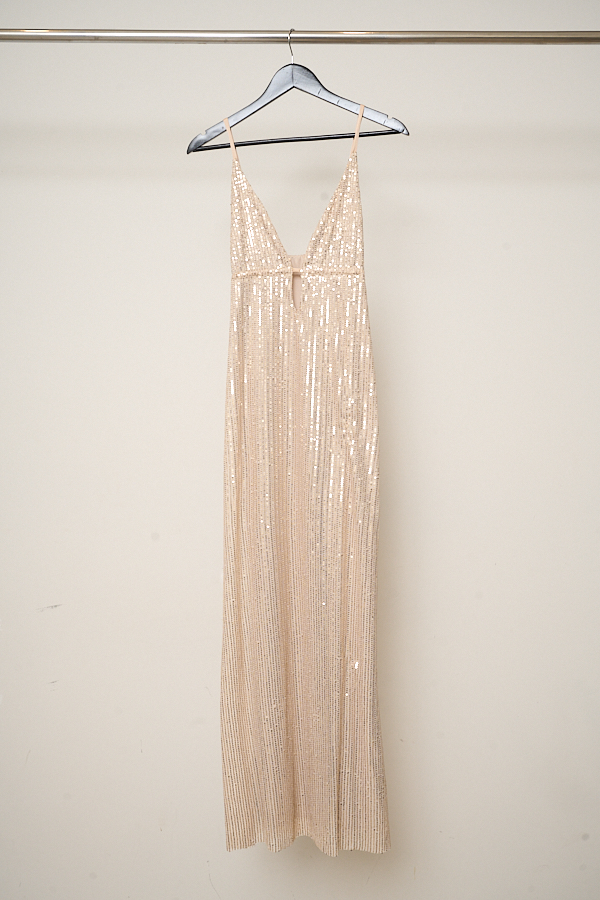VESTIDO LARGO LENTEJUELA TIRA EN ESCOTE