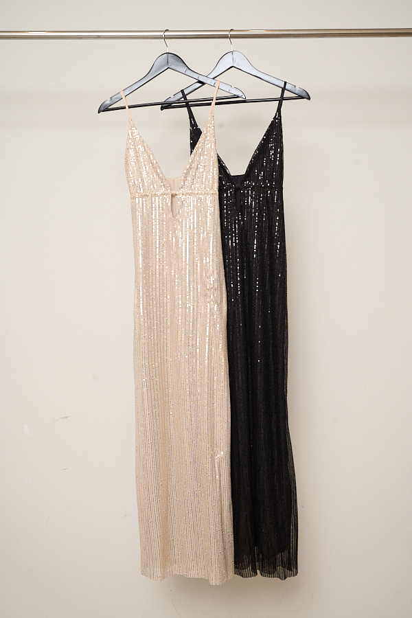 / VESTIDO LARGO LENTEJUELA TIRA EN ESCOTE